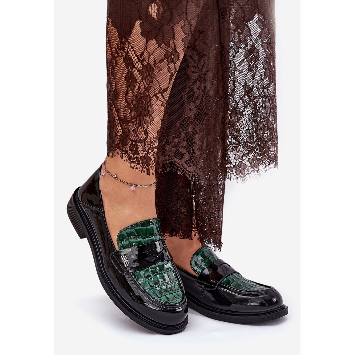 Descubra a elegância e a conveniência com mocassins femininos de couro envernizado Vinceza 91125 em verde e preto. Esses sapatos elegantes combinam a mais alta qualidade com o design da moda. Criados a partir de couro envernizado natural, eles não apenas proporcionam aparência estética, mas também durabilidade e conforto de uso.