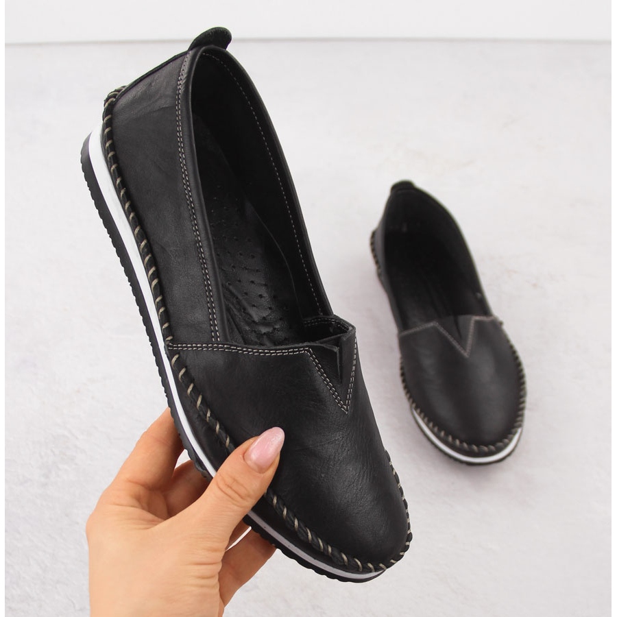 Detalhes: Mocassins de couro feminino escorregaram T.SOKOLSKI W25-741 preto