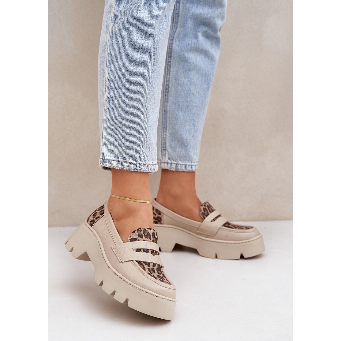 Descubra um estilo e conforto único com mocassins femininos bege leves! Feito de couro natural da mais alta qualidade, esses sapatos elegantes são a combinação perfeita de clássicos e modernidade. Graças ao salto plano de 5,5 cm de altura e uma plataforma estável (3,5 cm), eles fornecem excelente suporte e conforto de usar o dia todo.
