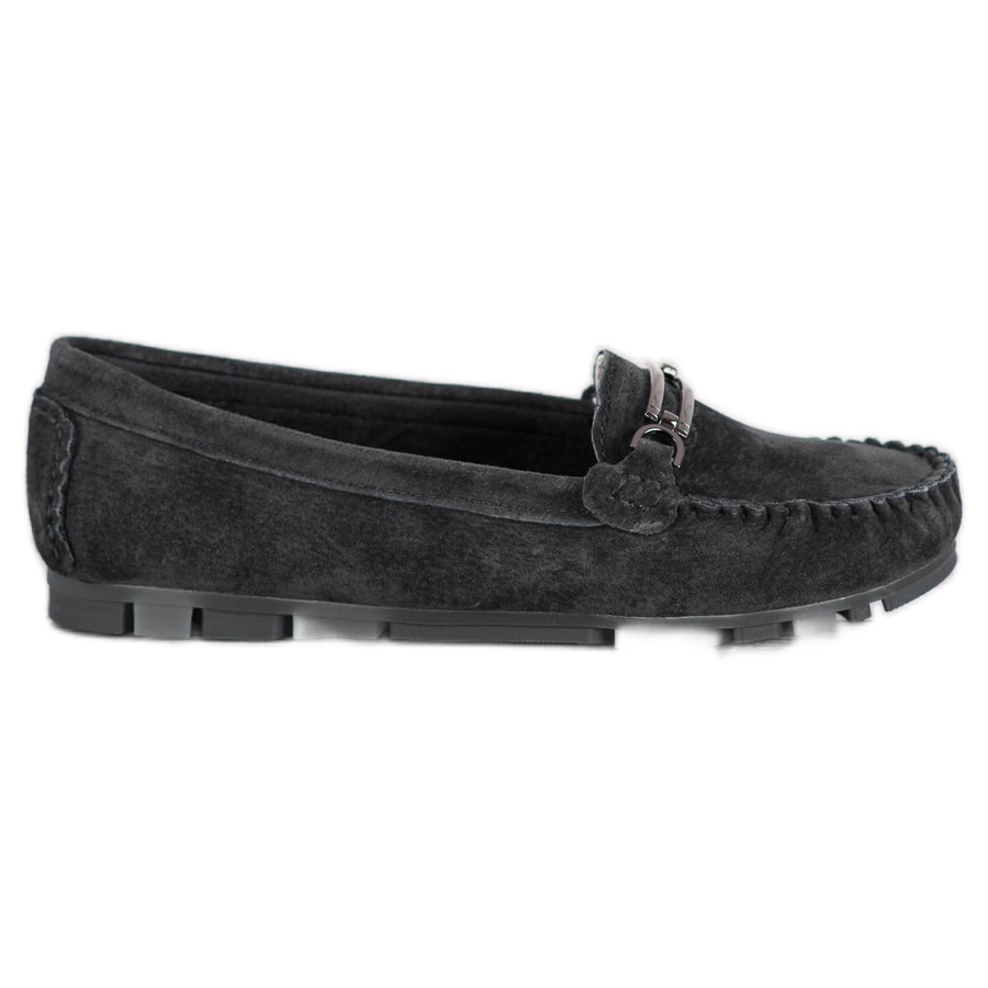 Os mocassins de couro Filippo na cor preta são a escolha perfeita para mulheres que valorizam a combinação entre estilo clássico e conforto. Estes elegantes sapatos distinguem-se pela sua construção sólida, confeccionada em pele natural de elevada qualidade, que garante uma utilização a longo prazo e conforto de utilização. A utilização de material têxtil no interior dos mocassins mantém os pés frescos e respiram bem, tornando-os uma excelente opção para a estação primavera/verão.