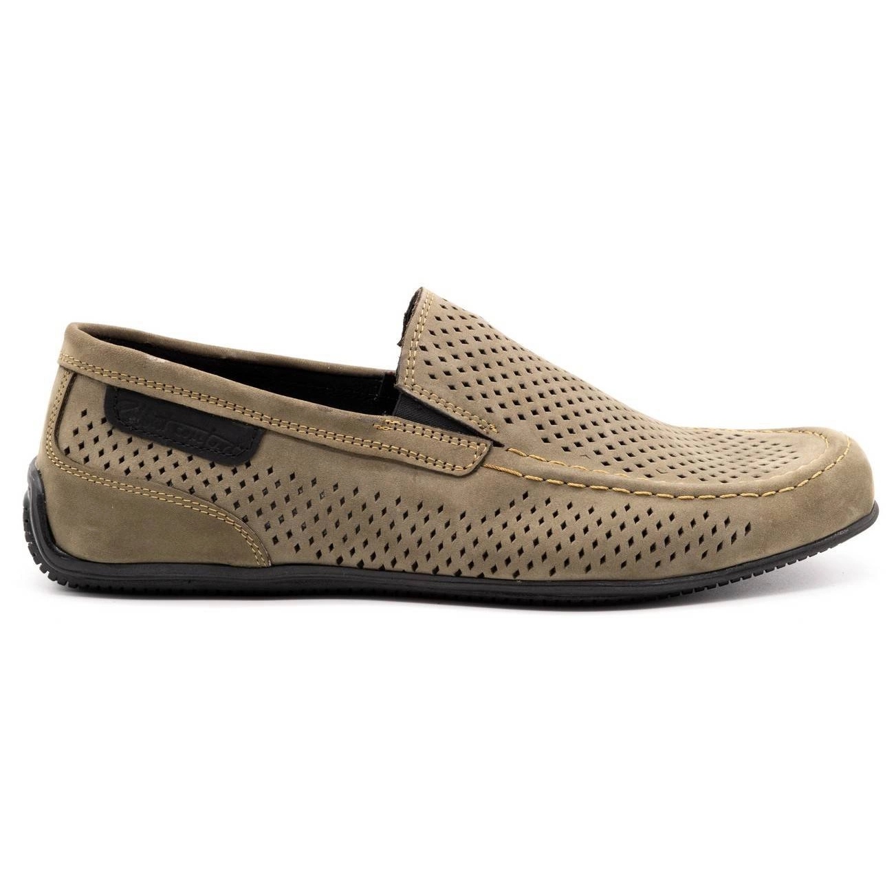 **Mocassins de couro masculino Polbut 2105P – verde oliva**