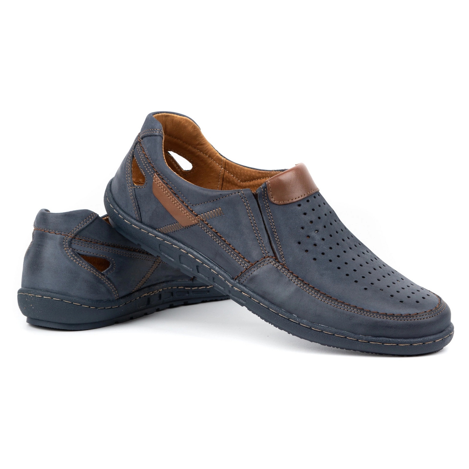 Mocassins masculinos de couro Olivier para o verão 602 Azul marinho – Conforto e estilo na edição de verão