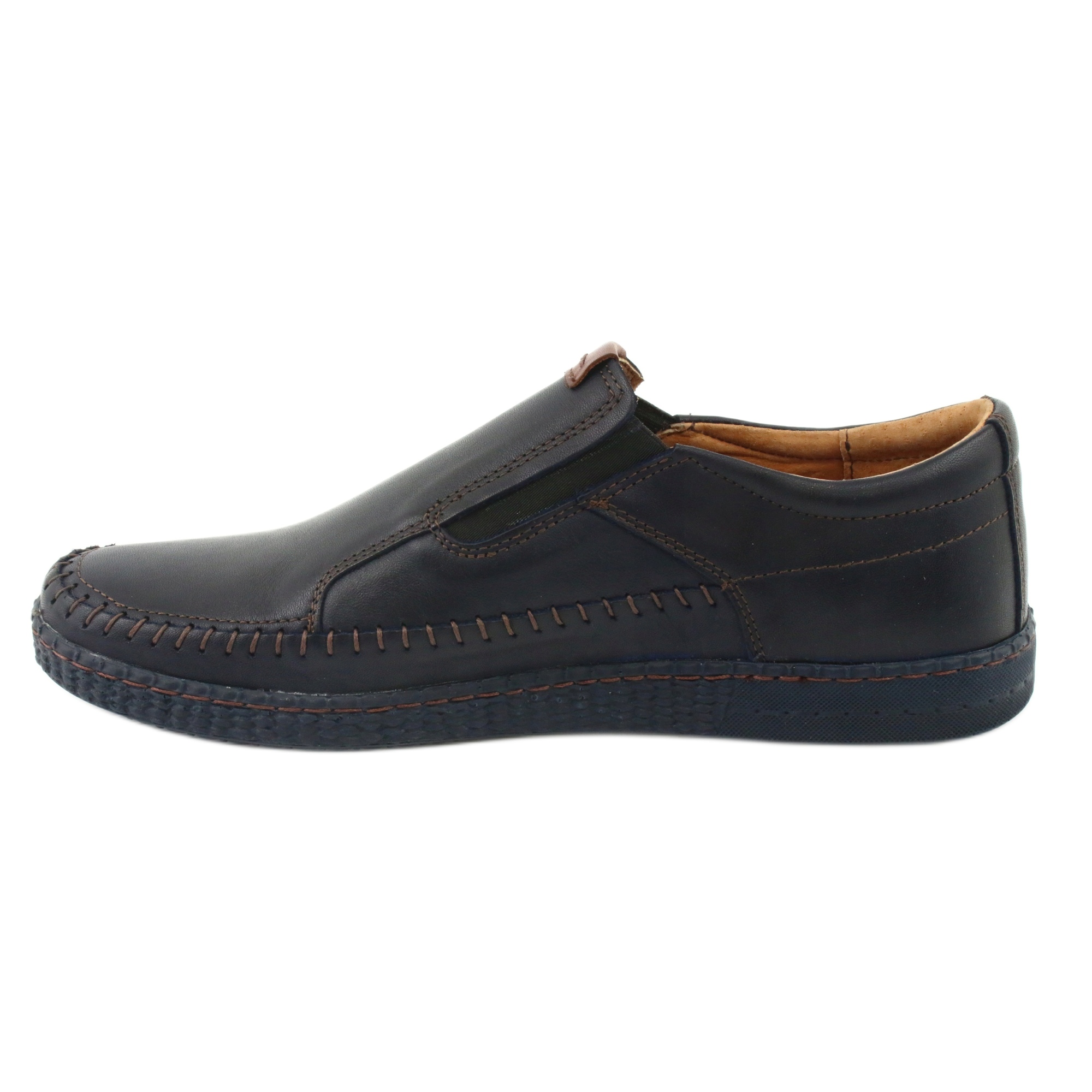 Detalhes: Riko Mocassins de couro masculinos 913 azul marinho