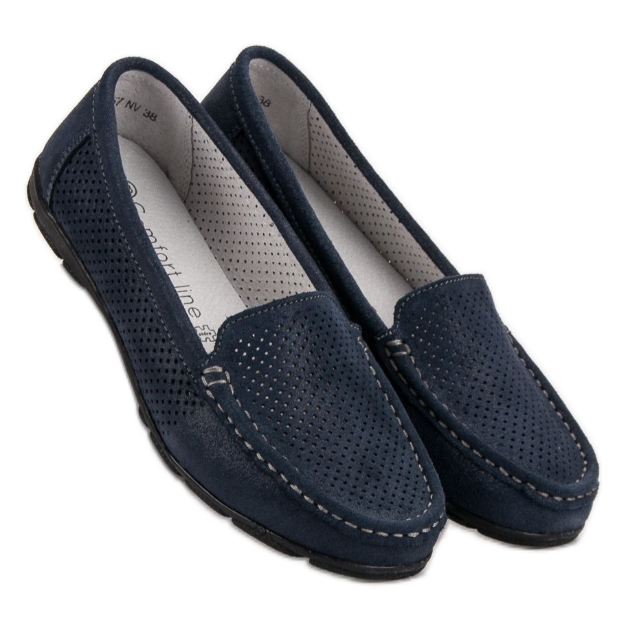 Apresentamos os mocassins VINCEZA vazados na elegante cor azul marinho, que são a combinação perfeita de conforto, estilo e acabamento de alta qualidade. Estes sapatos exclusivos foram criados para mulheres que desejam enfatizar sua personalidade e ao mesmo tempo desfrutar do conforto de uso.