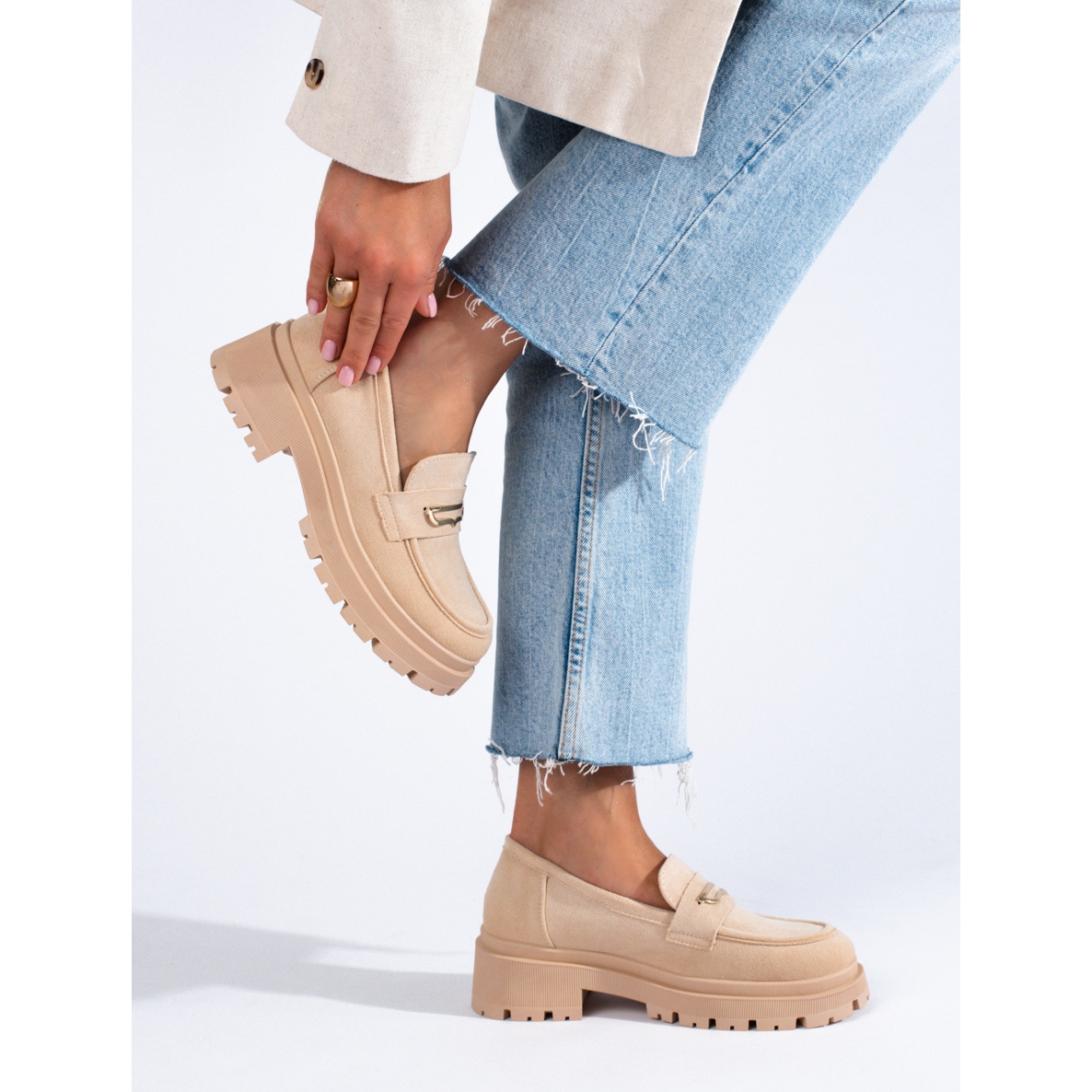 SHELOVET Mocassins de mulher em camurça bege, Shelovet