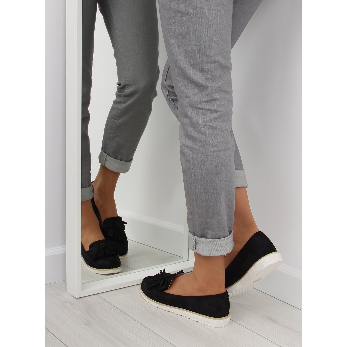 Inna marka Mocassins de mulher pretos com franjas 7214 Preto