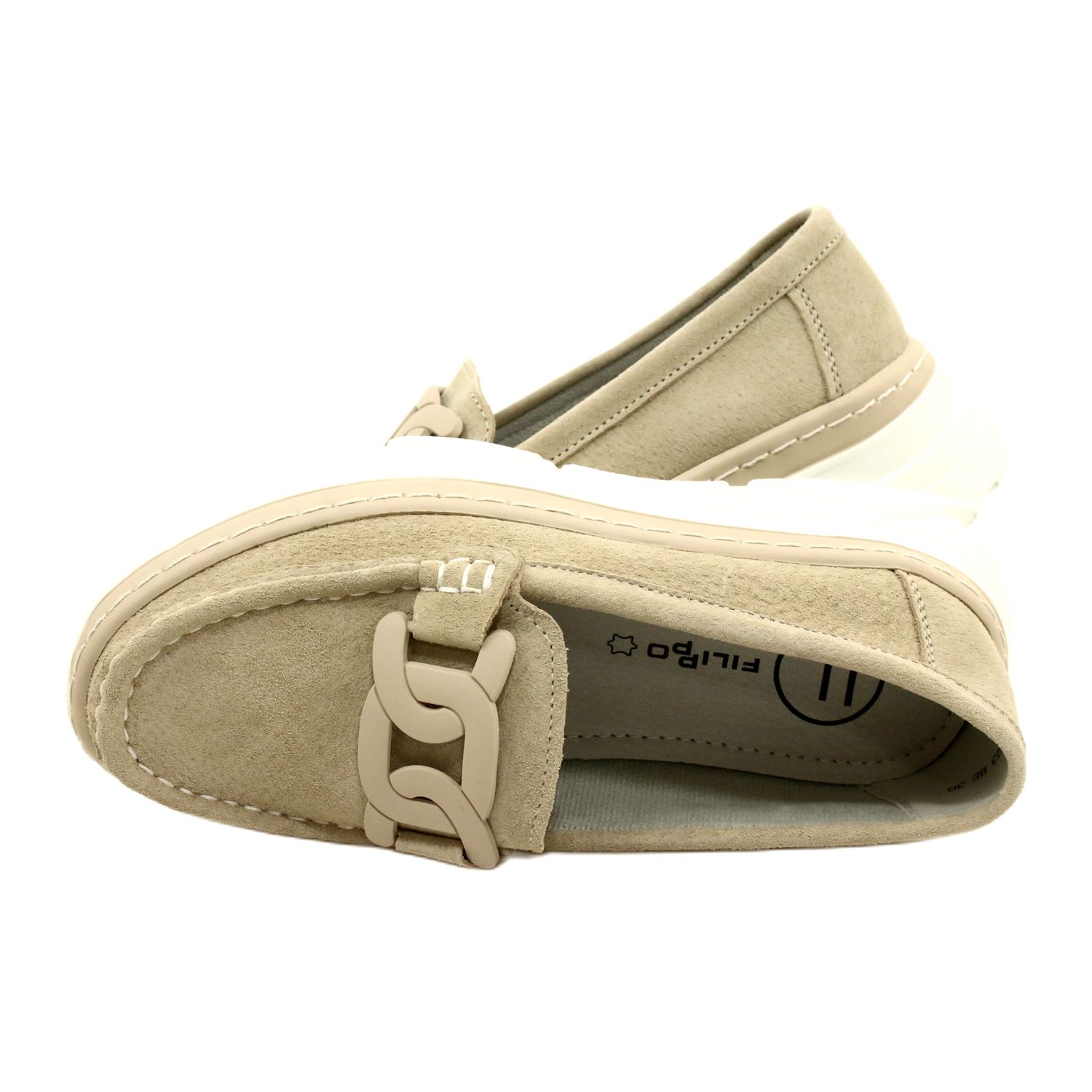 Os mocassins de couro Filippo DP4552/23 na cor bege são a proposta perfeita para os próximos dias de primavera e verão. Estes sapatos elegantes combinam conforto e estilo, tornando-os a escolha perfeita para todas as mulheres modernas. Confeccionados em couro natural, tanto por fora quanto por dentro, garantem durabilidade e conforto de uso.