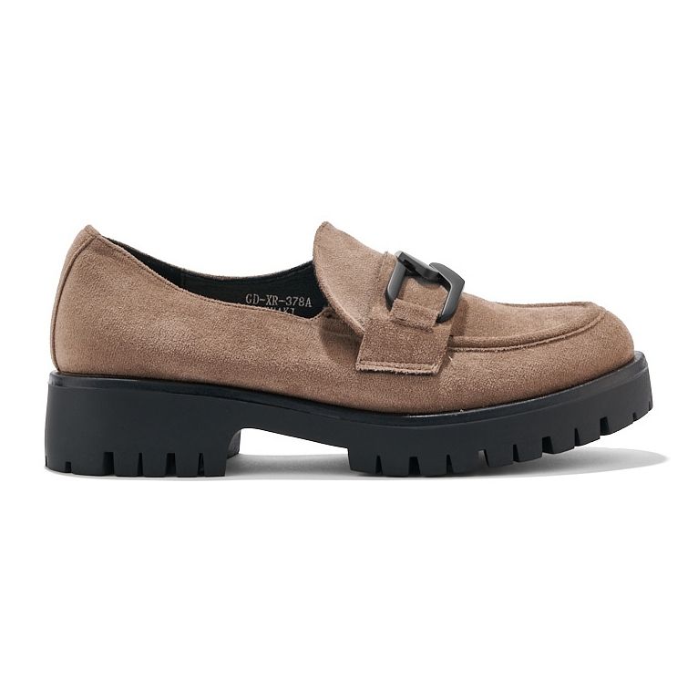 Os mocassins são caracterizados por um fixador deslizante e um salto macio e construído, o que garante o conforto de usar o dia todo. Um nariz redondo e uma plataforma alta com uma altura de 5 cm são uma garantia de conforto e estabilidade, e sua corrente elegante adiciona um charme sutil.