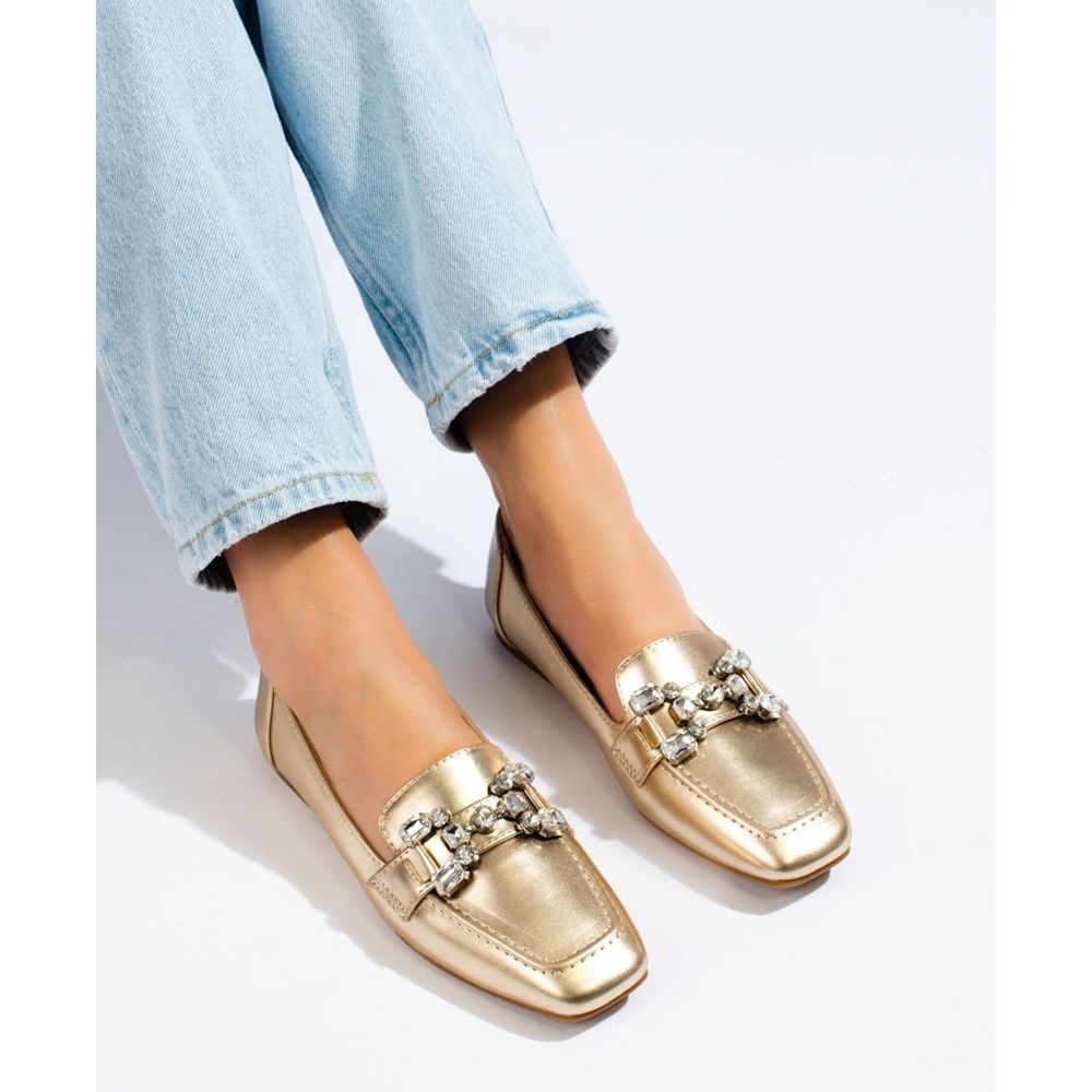 SHELOVET Mocassins dourados de mulher com aplicações Shelovet