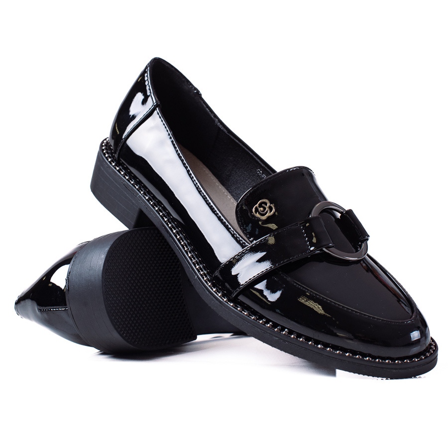 Este produto caracteriza-se por uma cor preta universal, o que torna extremamente fácil combinar com vários looks. Confeccionados em couro 100% imitação no material externo e couro ecológico envernizado, os calçados conferem aos calçados um brilho elegante que chama a atenção e acrescenta elegância. Graças à inserção em couro natural, estes mocassins não são apenas elegantes, mas também confortáveis de usar.