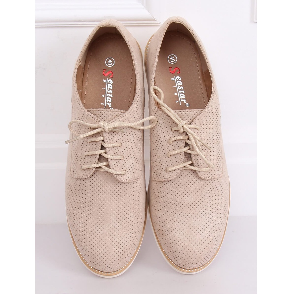 Os mocassins femininos bege com cadarço T297 Beige são a escolha perfeita para mulheres que valorizam a combinação de elegância e conforto. Seu corte clássico e atemporal e sua textura vazada conferem-lhes um caráter leve e elegante, perfeito para uma variedade de estilos. A cor bege combina perfeitamente com as últimas tendências e é tão universal que combina com muitos looks.