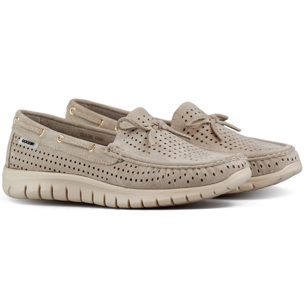 Detalhes: Mocassins femininos bege perfurados, mocassins femininos confortáveis e confortáveis