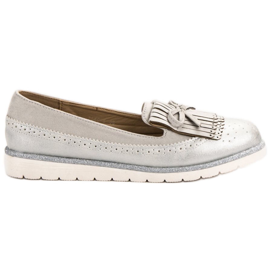 Os mocassins femininos Balada Grey são uma proposta para mulheres que desejam adicionar um pouco de exclusividade ao seu estilo do dia a dia. Estes sapatos elegantes, confeccionados em couro ecológico de alta qualidade, combinam modernidade e estilo clássico, criando um design único. Tons de cinza, prata e branco chamam a atenção, e detalhes sutis em forma de franjas e laços conferem-lhes um charme feminino.