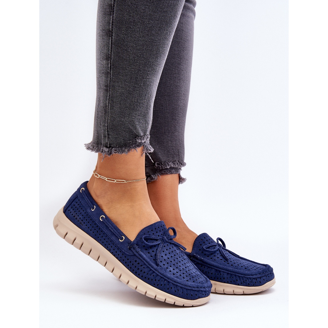 Os mocassins femininos de Vinceza com um arco azul marinho são uma ótima proposta para a temporada de primavera-verão, combinando elegância com conforto. Feito de camurça ecológica, esses mocassins abertos são um ótimo complemento para toda estilização de verão, dando a ele um personagem sofisticado.