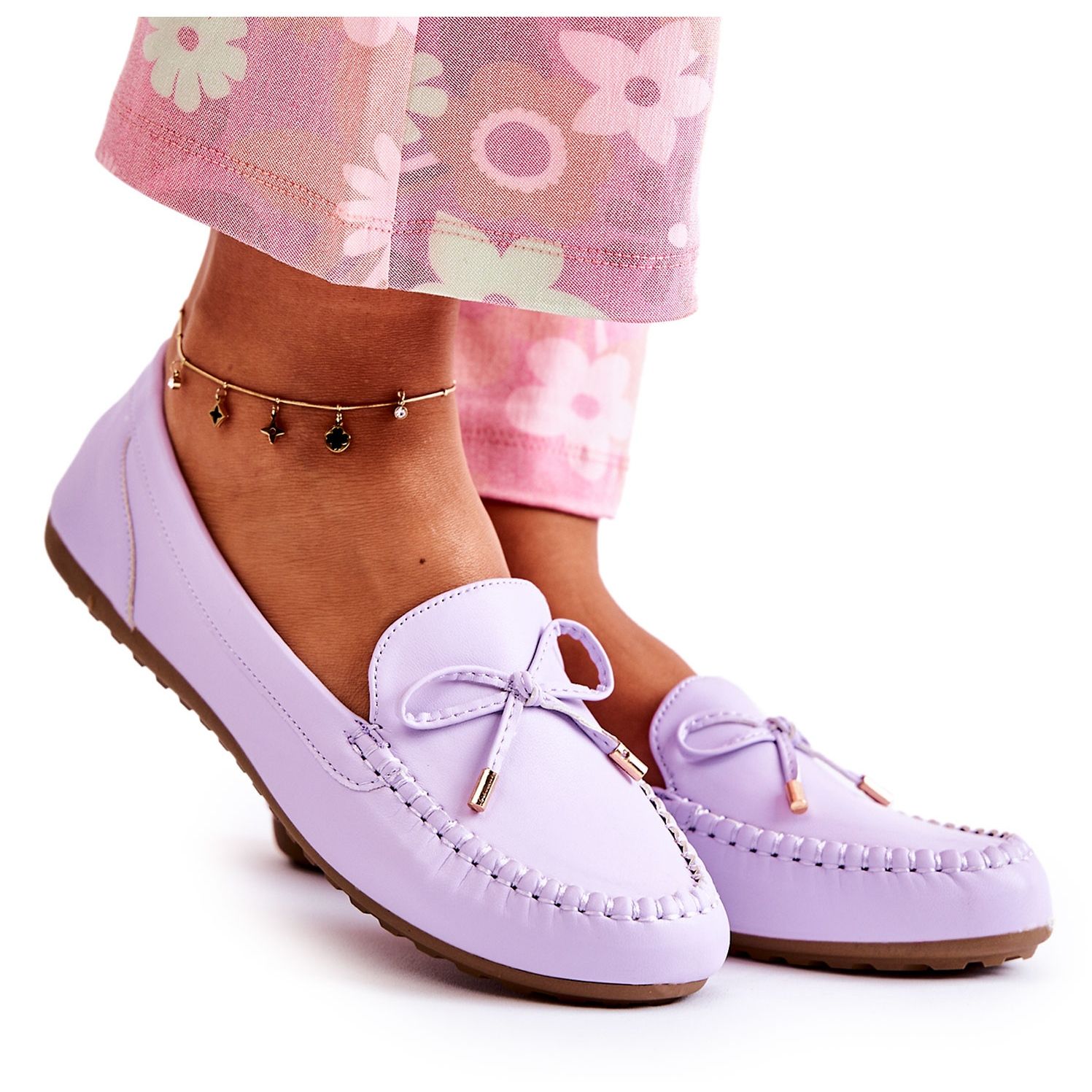PG1 Mocassins femininos com laço violeta Aurila roxo