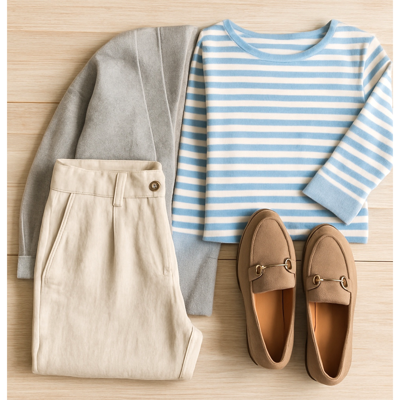 Os mocassins de camurça marrom ficam fenomenais com linho leve. Combine-as com calças de linho cru e uma sweatshirt às riscas em tons de azul e branco. Coloque um cardigã cinza sobre os ombros e desfrute de uma roupa confortável e elegante. Lembre-se de escolher acessórios em tons semelhantes e evitar muitas cores contrastantes. A delicadeza da primavera também exige sutileza na seleção dos acessórios.
