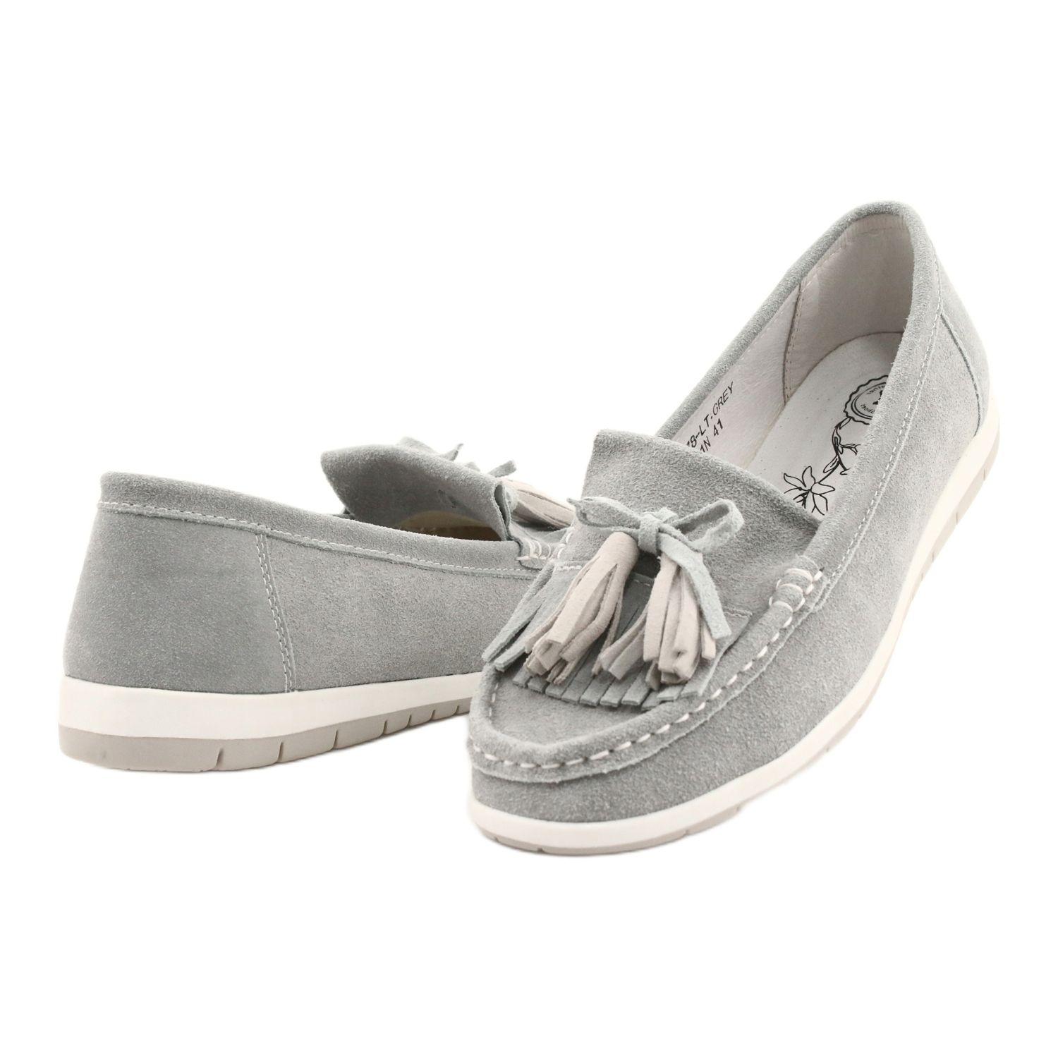 Evento Evento Mocassins femininos, couro camurça com franjas, batist cinza