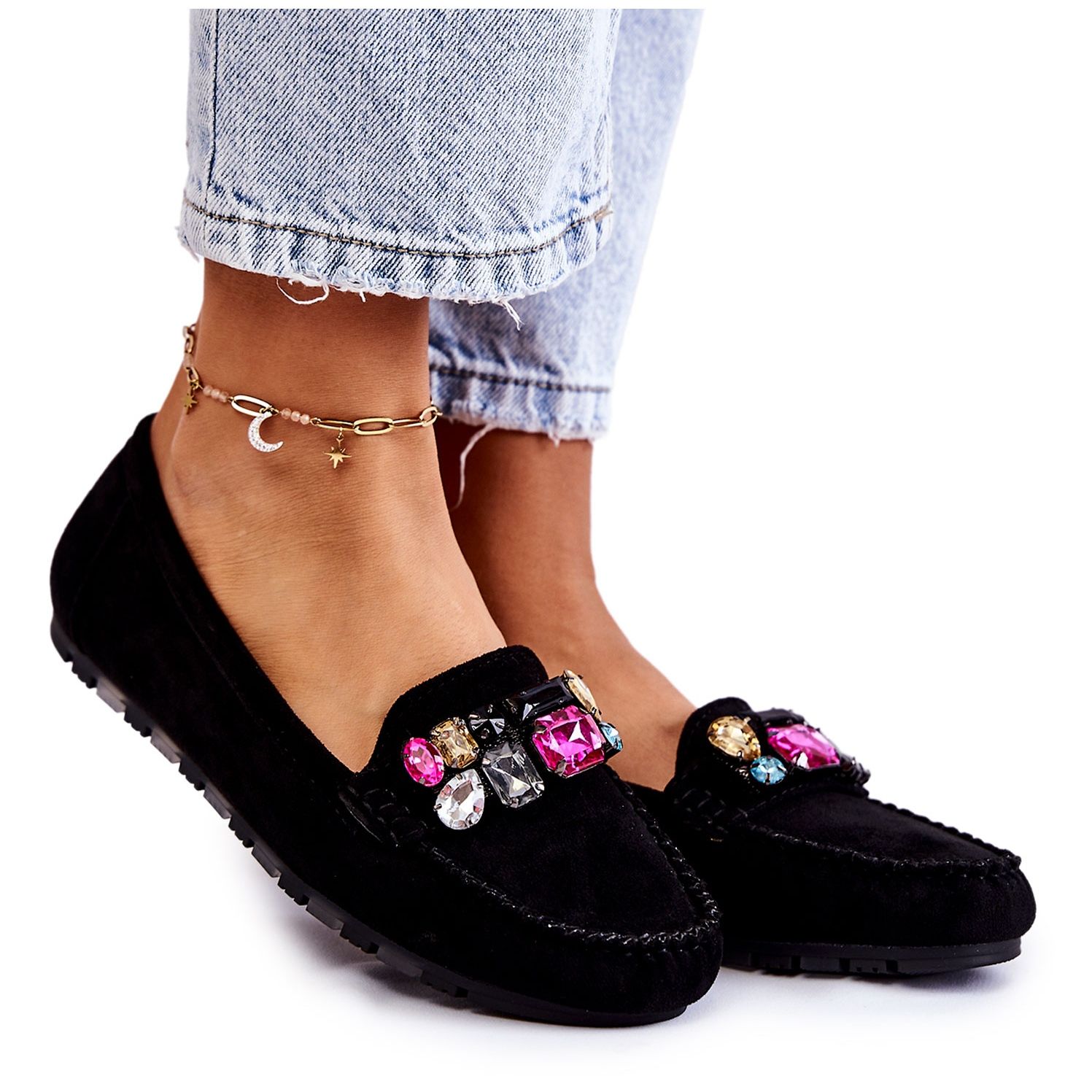 Detalhes: PS1 Mocassins femininos de camurça com enfeites Janetta preta preto