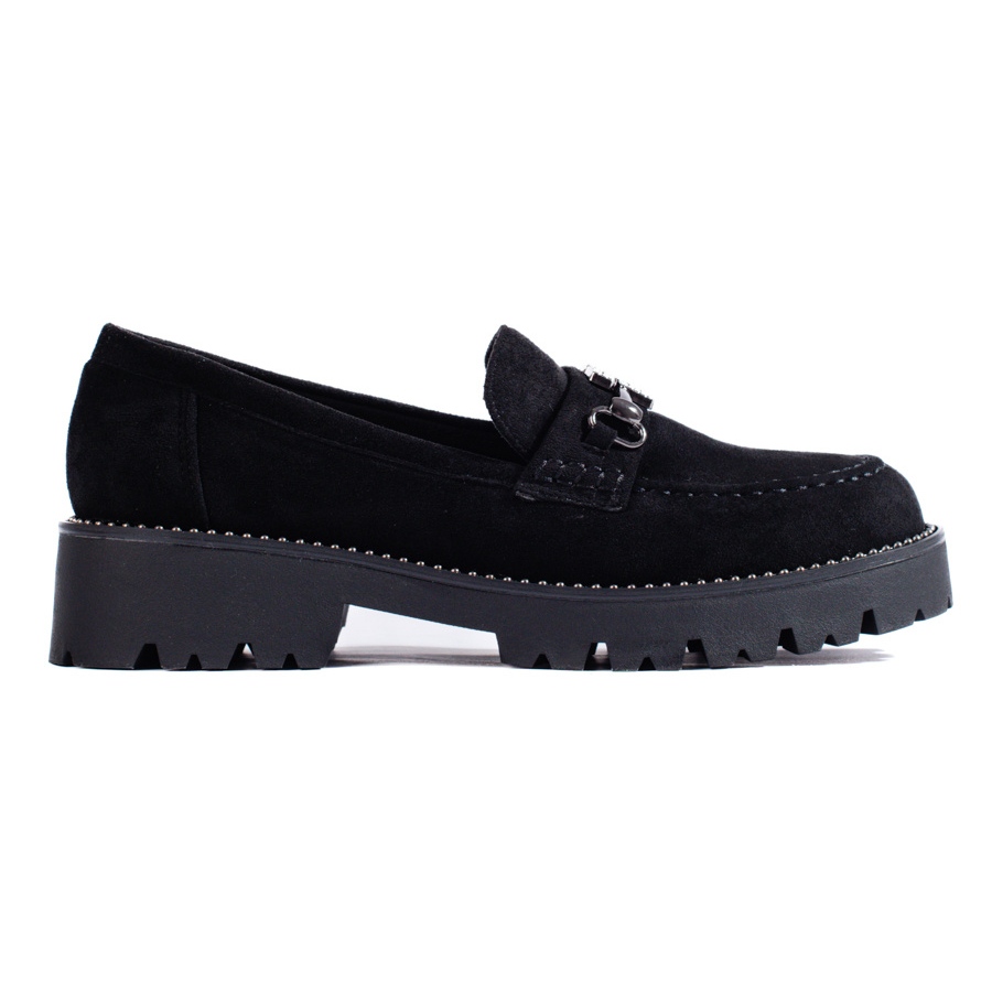 Detalhes: Mocassins femininos de camurça com sola grossa Shelovet preta preto