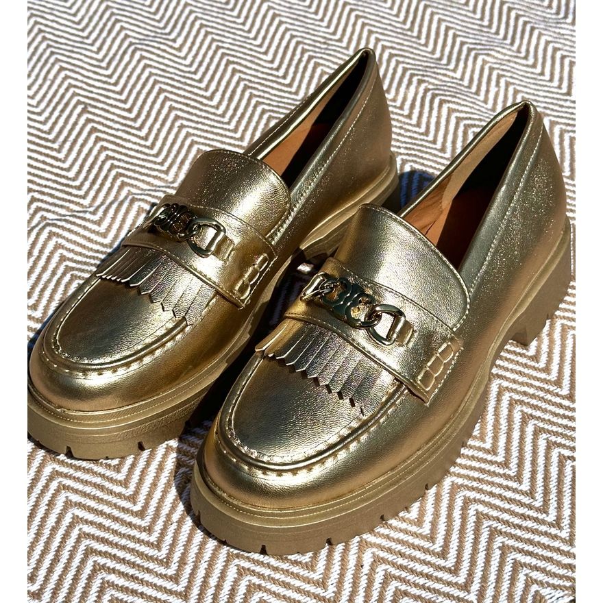 Detalhes: PH2 Mocassins femininos de couro ecológico com decoração dourada Zanita dourado