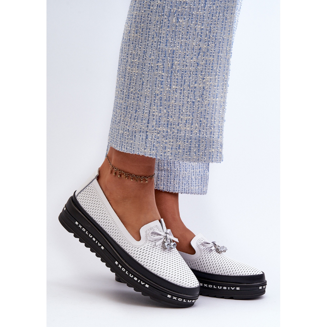 Detalhes: Mocassins femininos de couro na plataforma S.Barski LR400, branco