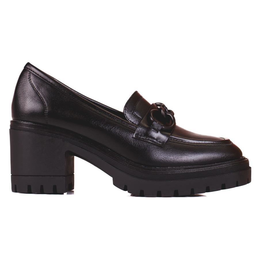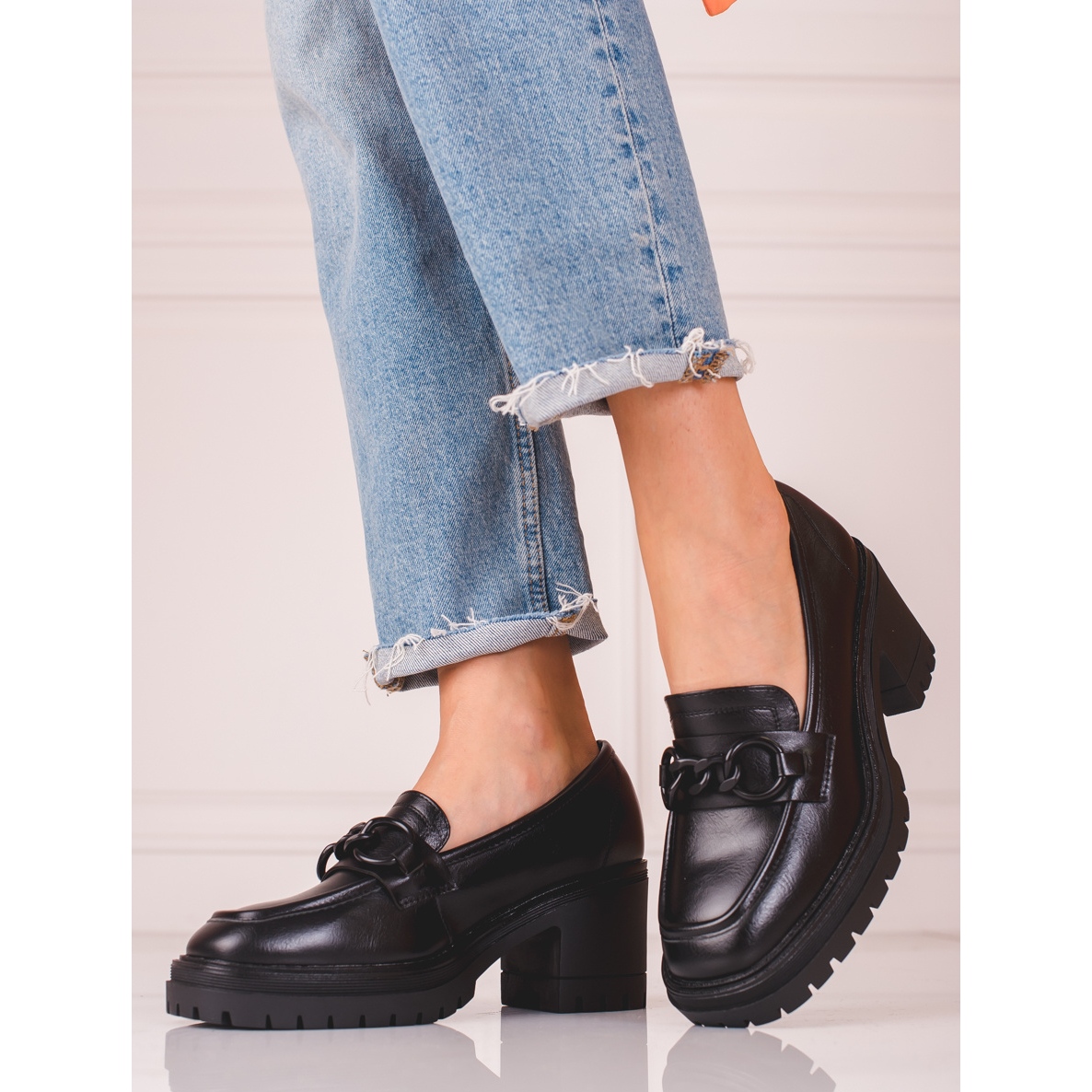 Detalhes: Mocassins femininos de salto alto preto Vinceza