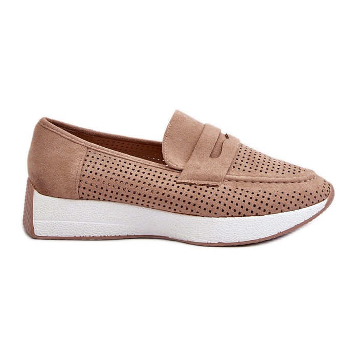 Inna marka Mocassins femininos em camurça ecológica bege com plataforma da Inesqua