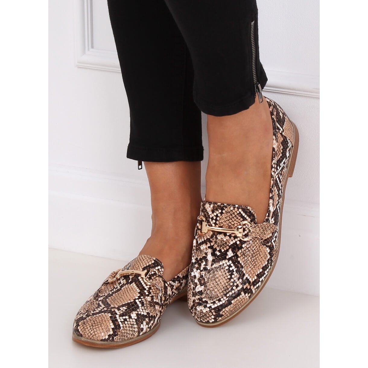 Inna marka Mocassins femininos em pele de cobra T356P Snake Beige bege