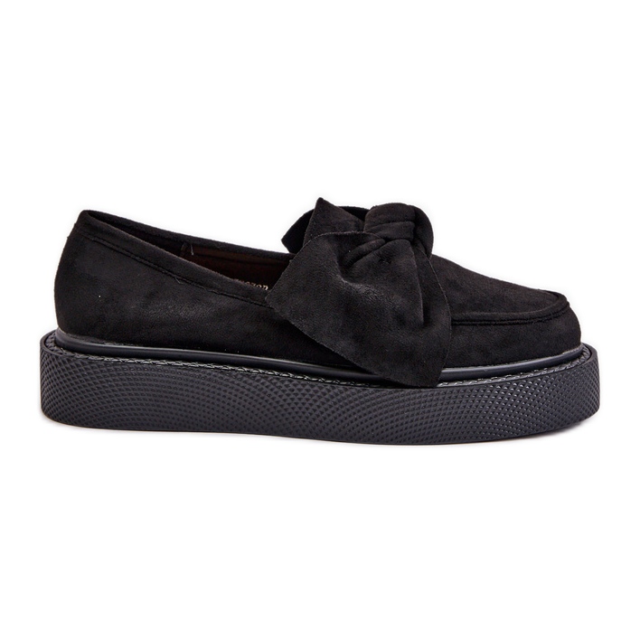 Os mocassins femininos na plataforma com um arco preto preto é uma ótima opção para todas as mulheres da moda que valorizam o conforto e o estilo. Esses mocassins elegantes foram cuidadosamente feitos de camurça ecológica de alta qualidade, o que os faz parecer extremamente impressionantes.