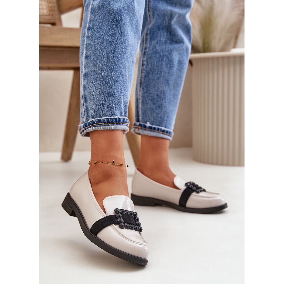 Vinceza Mocassins femininos envernizados com decoração, cinza claro Vinceza 58389