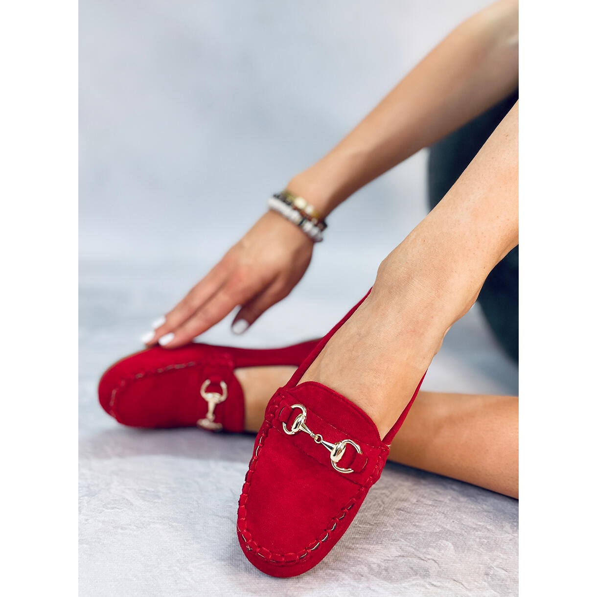 Os mocassins distinguem-se por detalhes subtis, como aplicações douradas e costuras características, que lhes conferem um carácter sofisticado. O salto plano e o fecho deslizante tornam-nos não só elegantes, mas também extremamente confortáveis, e a palmilha almofadada garante conforto a cada passo.