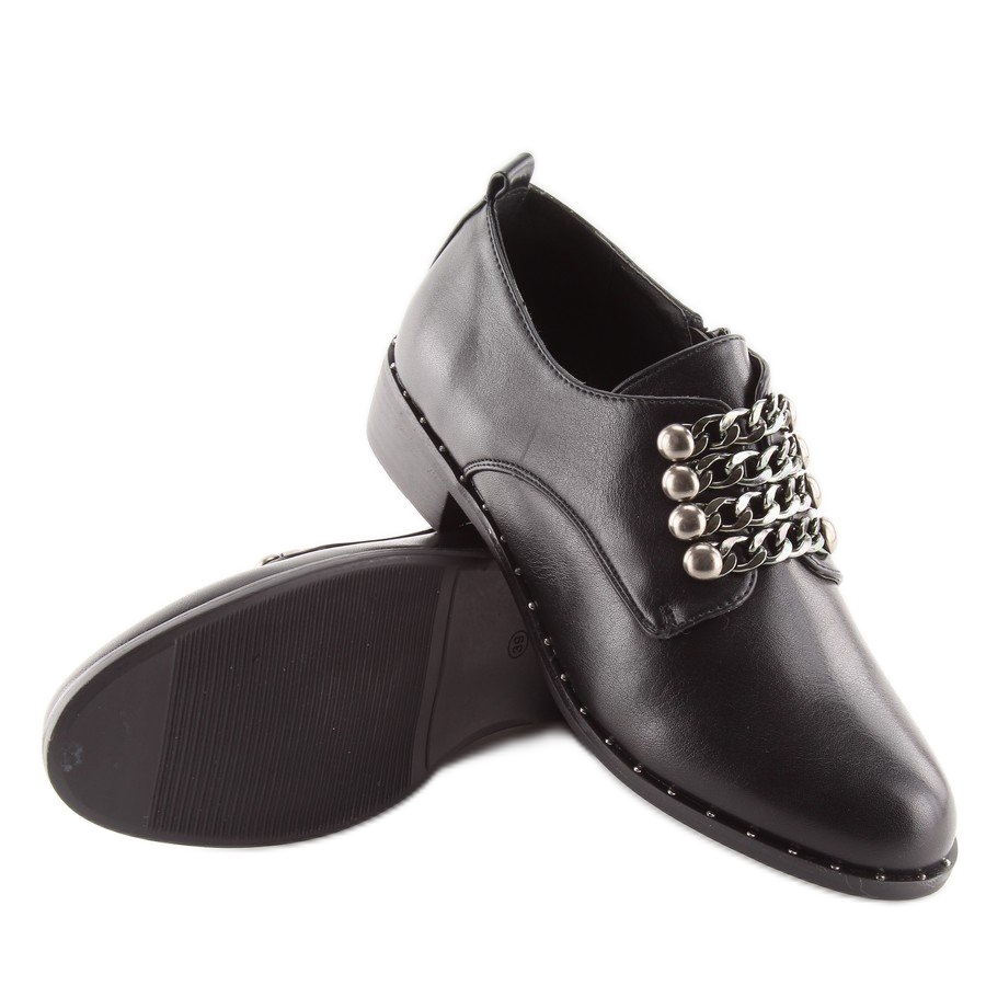 Os mocassins pretos femininos C-7160 Black são uma excelente escolha para mulheres que desejam combinar o estilo clássico com um toque de moda. Estes sapatos distinguem-se por um estilo elegante mas único que chama a atenção. O laço decorativo em forma de corrente acrescenta originalidade, e o acabamento cravejado de pequenos tachas acrescenta um pouco de loucura ao design clássico.