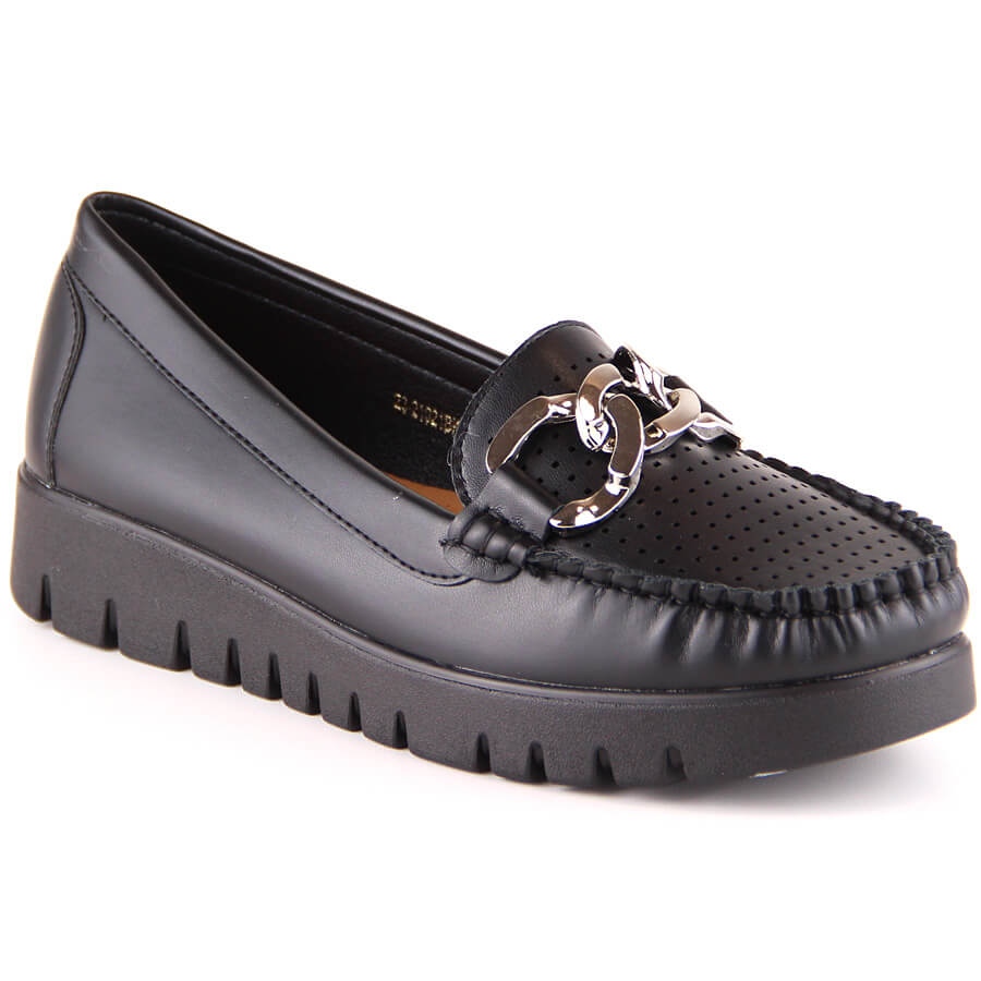 **Mocassins femininos em plataforma com corrente, preto Potocki YQ21021**