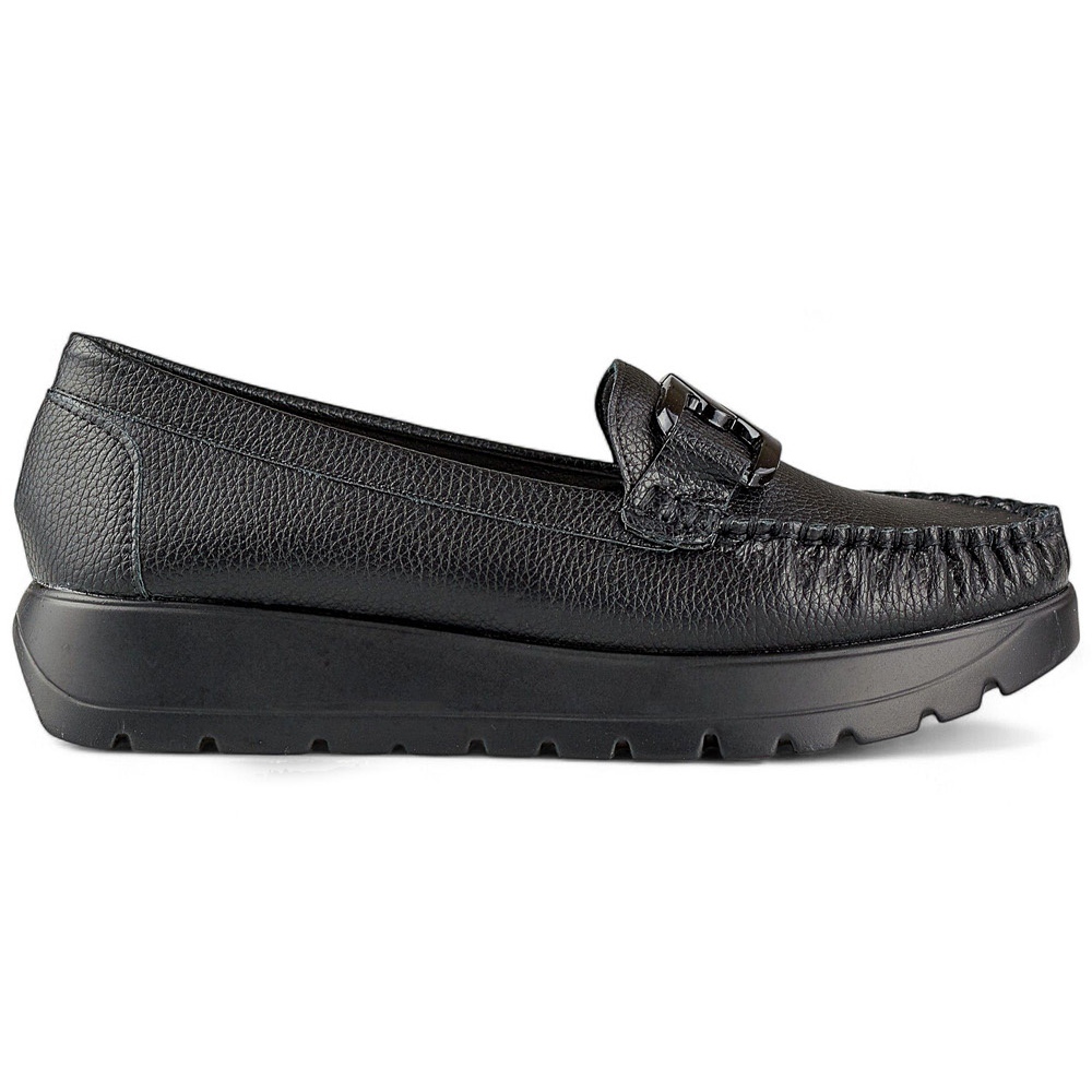 Inna marka Mocassins femininos pretos em couro ecológico na plataforma, palmilha de couro