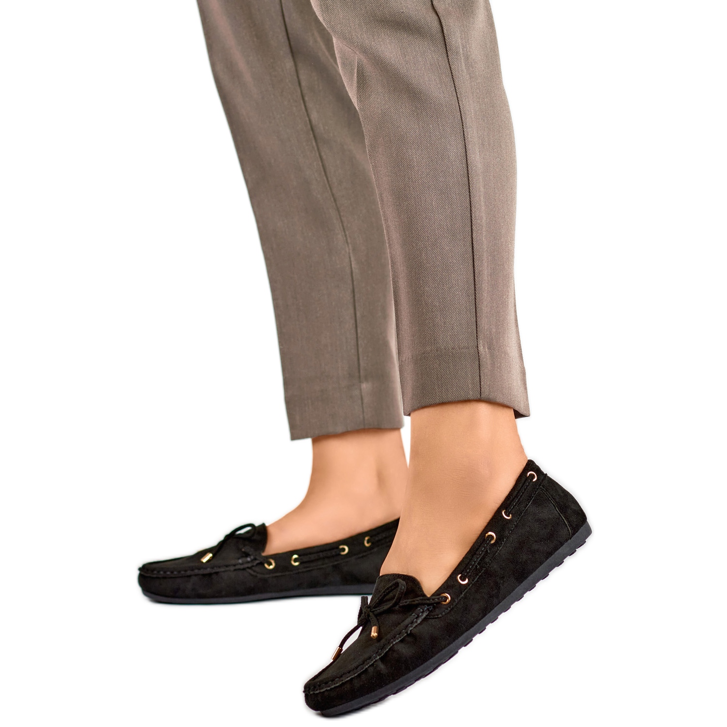 Detalhes: Mocassins femininos QQ5B com laço preto