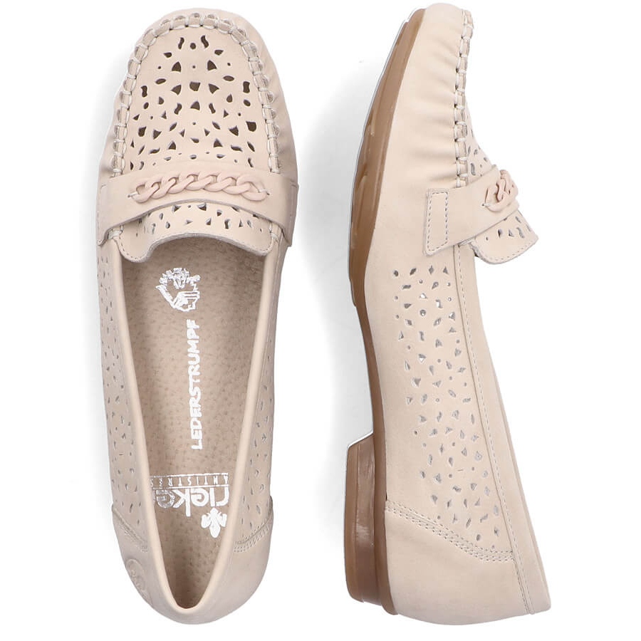 Rieker Mocassins femininos vazados confortáveis Rieker 40068-60 bege