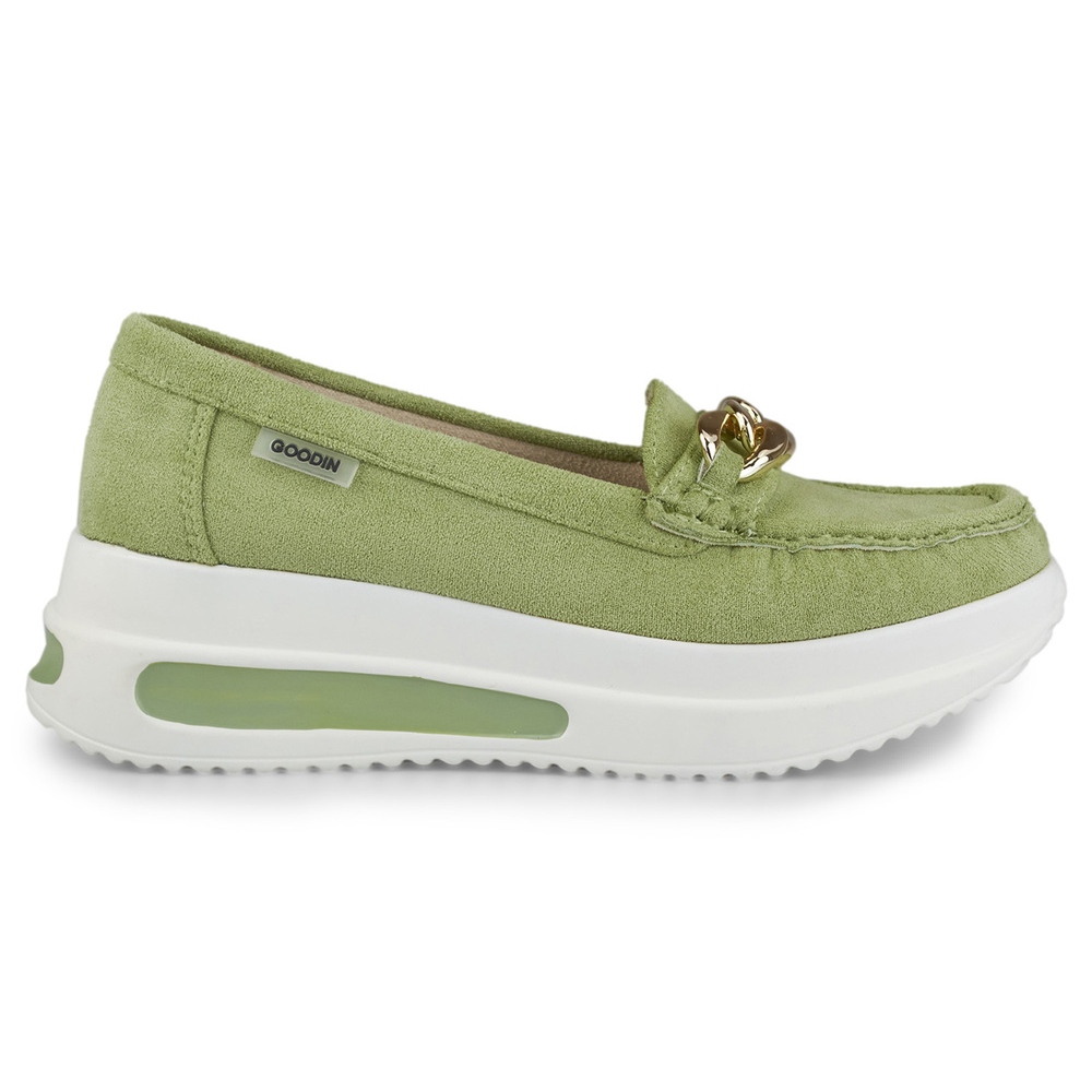 Então, se você procura sapatos confortáveis, modernos e versáteis que possam atualizar seus looks do dia a dia, esses mocassins plataforma verdes claros são uma ótima escolha. Veja você mesmo como é fácil adicionar cor e conforto ao caminhar do dia a dia, mantendo-se atualizado com as últimas tendências da moda.