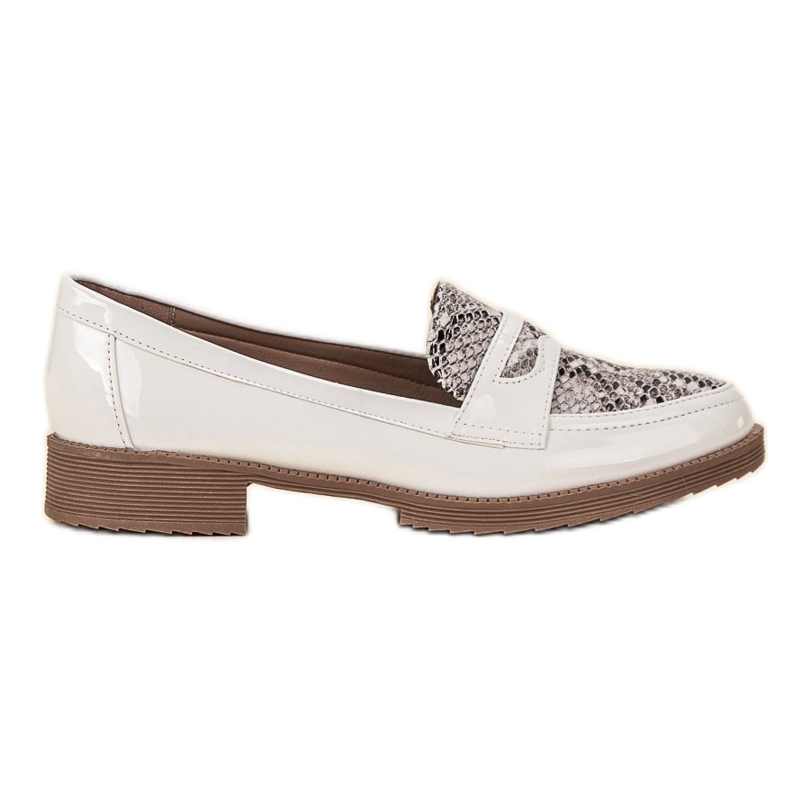 Os mocassins lacados da Bestelle são a escolha perfeita para mulheres que desejam adicionar um pouco de originalidade e elegância ao seu estilo. Estes sapatos únicos distinguem-se por uma bela combinação de branco e castanho, e o seu padrão animal imitando pele de cobra confere-lhes um estilo distinto.