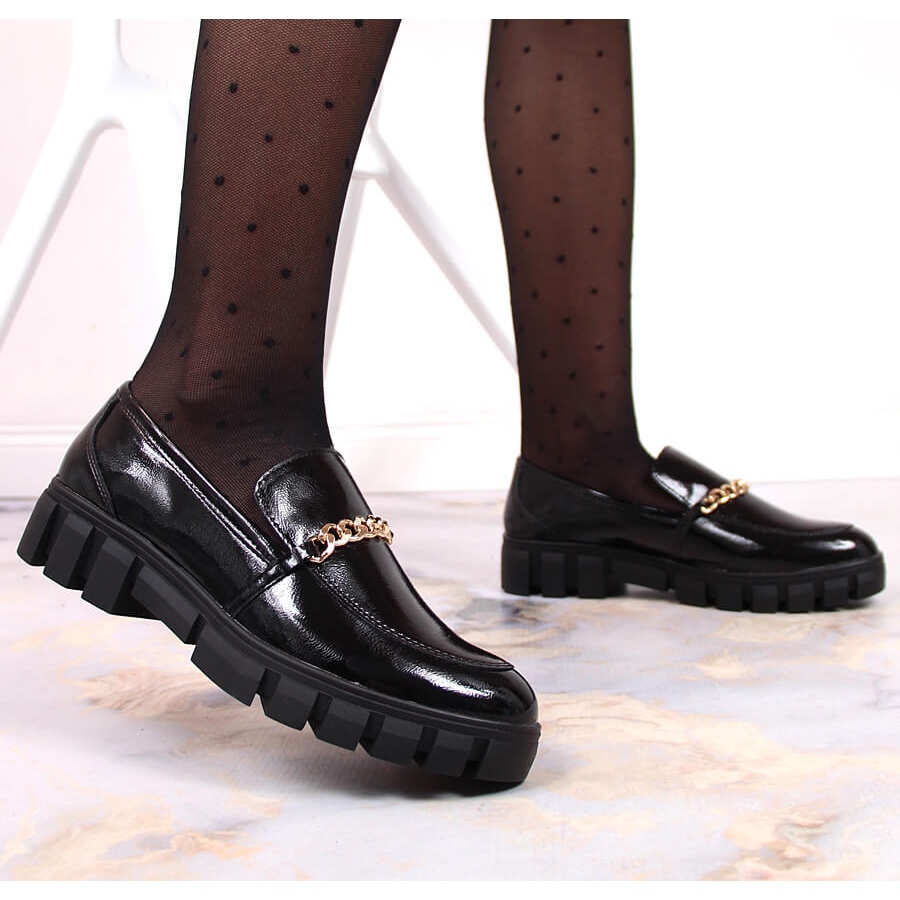 Detalhes: Sergio Leone Mocassins lacados com corrente preto
