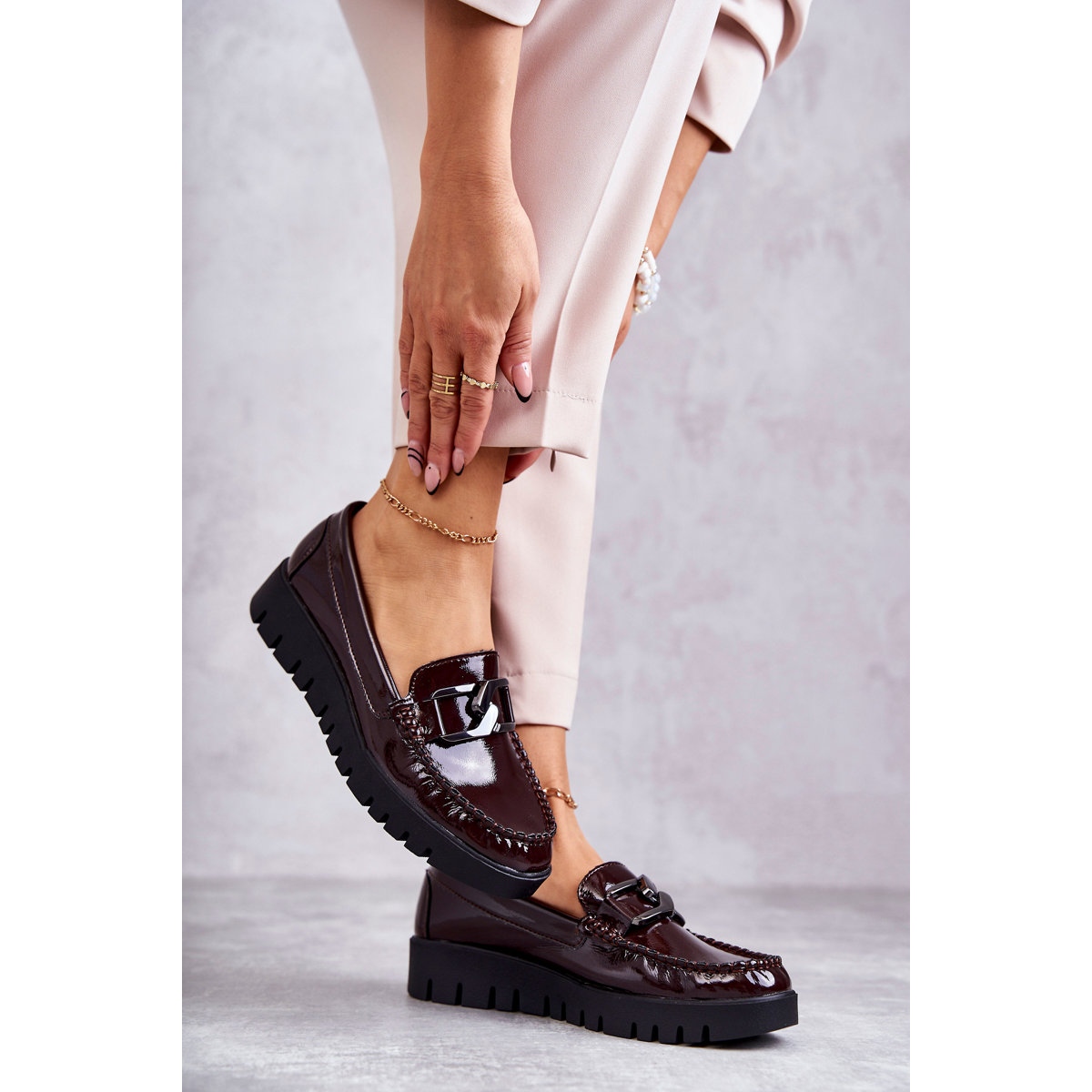Detalhes: Sergio Leone Mocassins lacados na plataforma Burgundy Kjersti vermelho