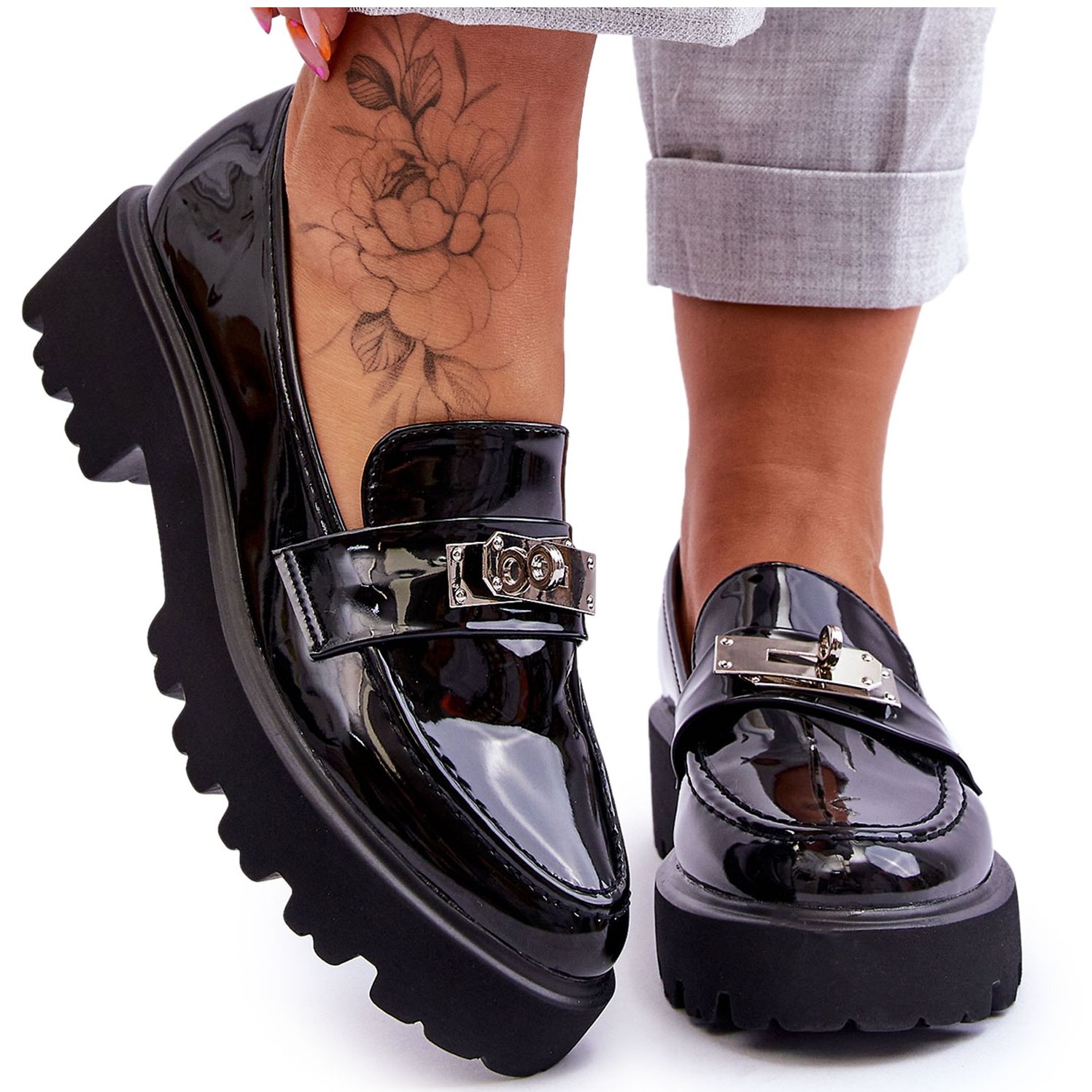 Detalhes: FJ1 Mocassins Laqueados com Decoração de Plataforma Black Glory preto