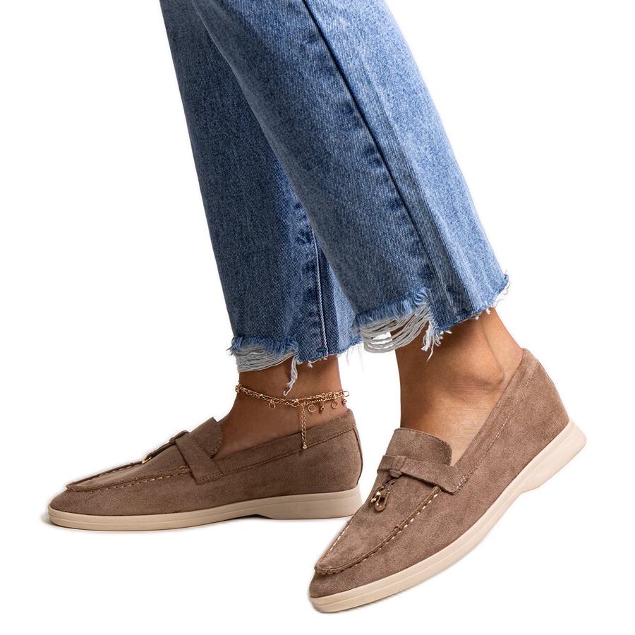Inna marka Mocassins marrom escuro com pingente de metal da Fiorano bege