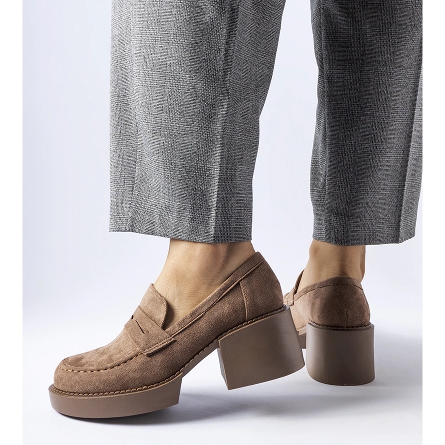 Os mocassins femininos de Taupe (Brown) elegantes e confortáveis, perfeitos para a temporada de verão. A combinação de um corte clássico com soluções práticas: estrutura deslizante, um dedo redondo e altura média do calcanhar, o tipo de bloco garante conforto ao longo do dia e uma aparência universal e elegante.