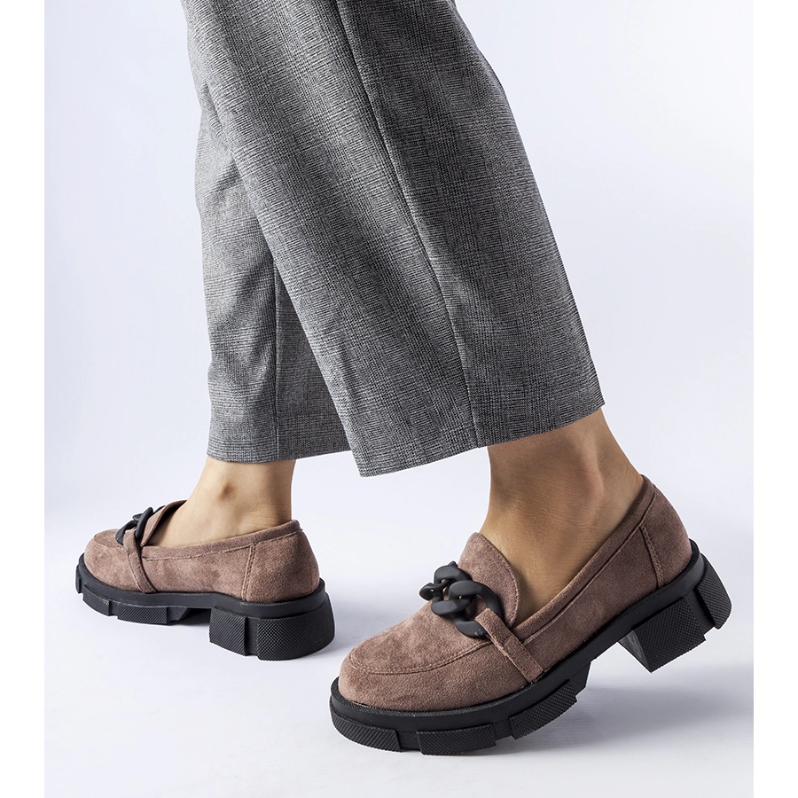 Mocassins marrons com corrente em camurça ecológica marrom