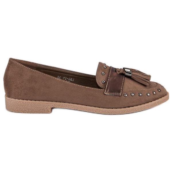 Descubra a elegância e o conforto oferecidos pelos mocassins marrons com franjas da marca Inna. Estes elegantes sapatos femininos são a escolha perfeita para mulheres que valorizam uma combinação de classe e toques modernos. Confeccionados em couro camurça ecológico, proporcionam não só um aspecto estético, mas também conforto de uso.