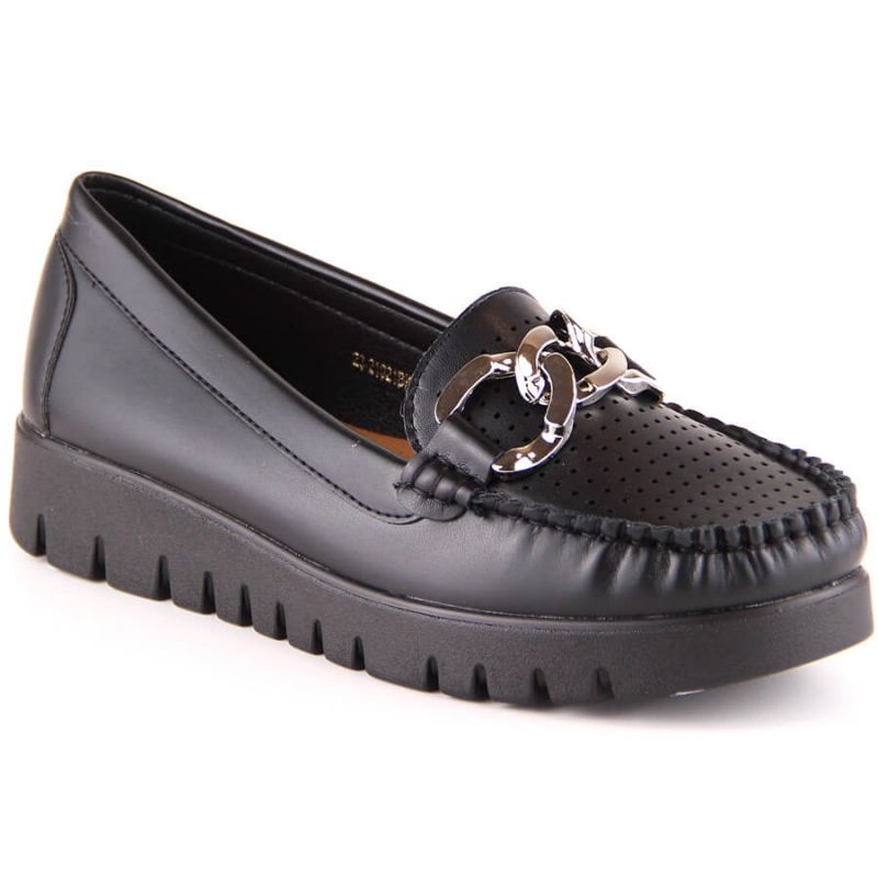 Os mocassins plataforma pretos Potocki W YQ21021 com corrente são calçados exclusivos que refletem as últimas tendências da moda urbana. Proporcionando conforto para o uso diário, esses calçados são uma excelente opção para mulheres que valorizam a combinação de estilo e conforto.