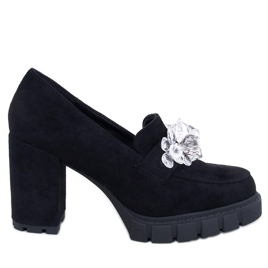 Apresentamos sapatos únicos - mocassins de salto alto Nadine Black, que combinam elegância e modernidade. Estes sapatos femininos em camurça preta são uma escolha que irá satisfazer até os amantes da moda mais exigentes. Os designers combinaram o estilo clássico com um pouco de extravagância, resultando em botins que chamam a atenção e acrescentam autoconfiança.