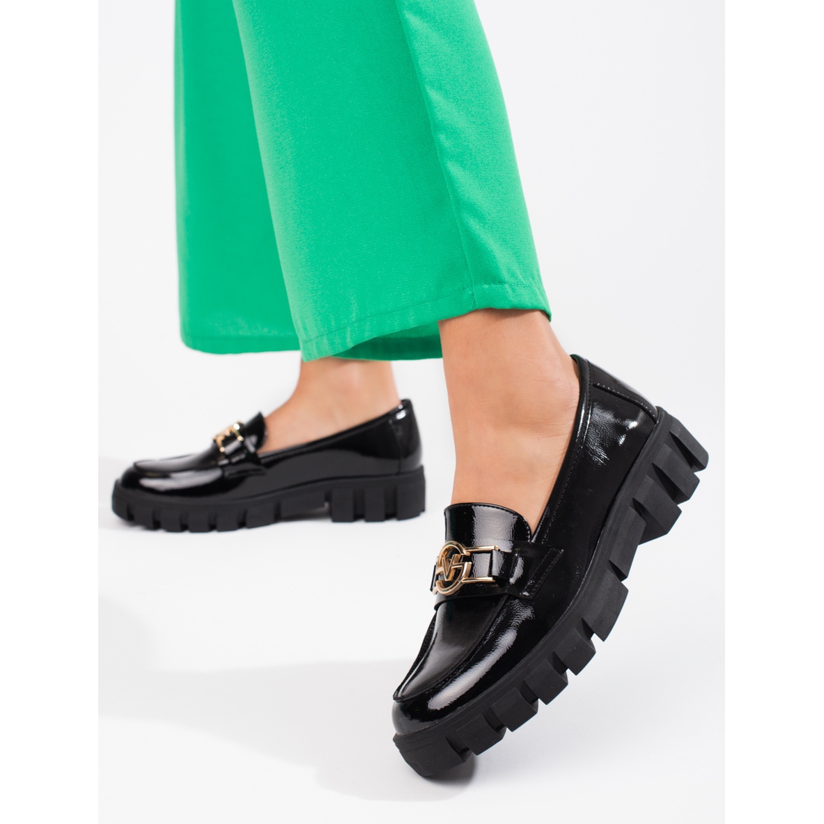 Detalhes: Mocassins plataforma lacados de mulher Vinceza pretos