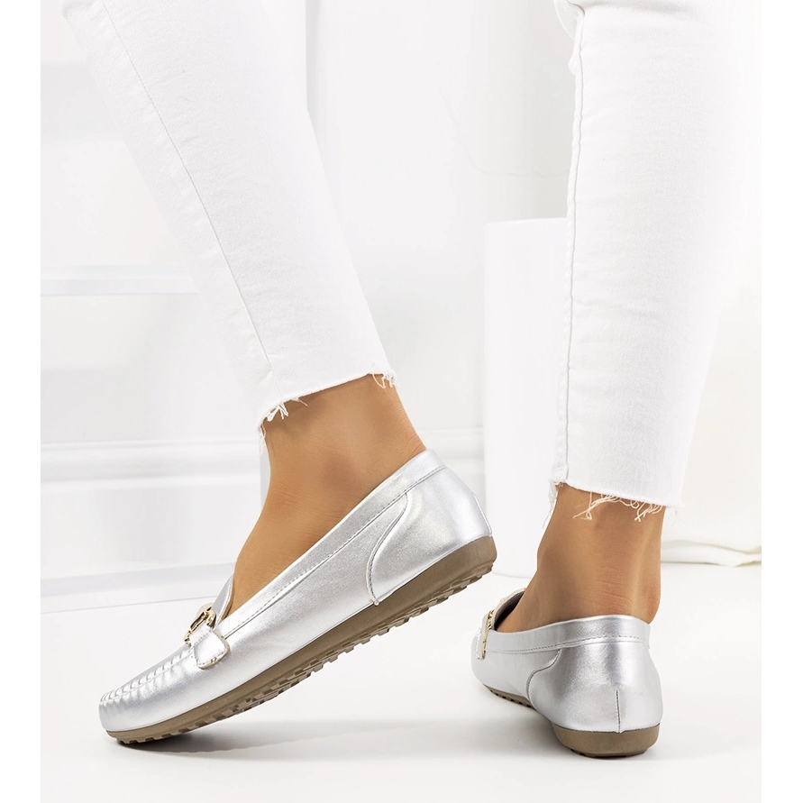 Os mocassins de Ilana de prata são uma proposta para mulheres que valorizam uma elegância e conveniência - um detalhe da moda que é fácil de se adaptar a muitos estilos. Lembre -se: escolha um tamanho maior que o habitual.