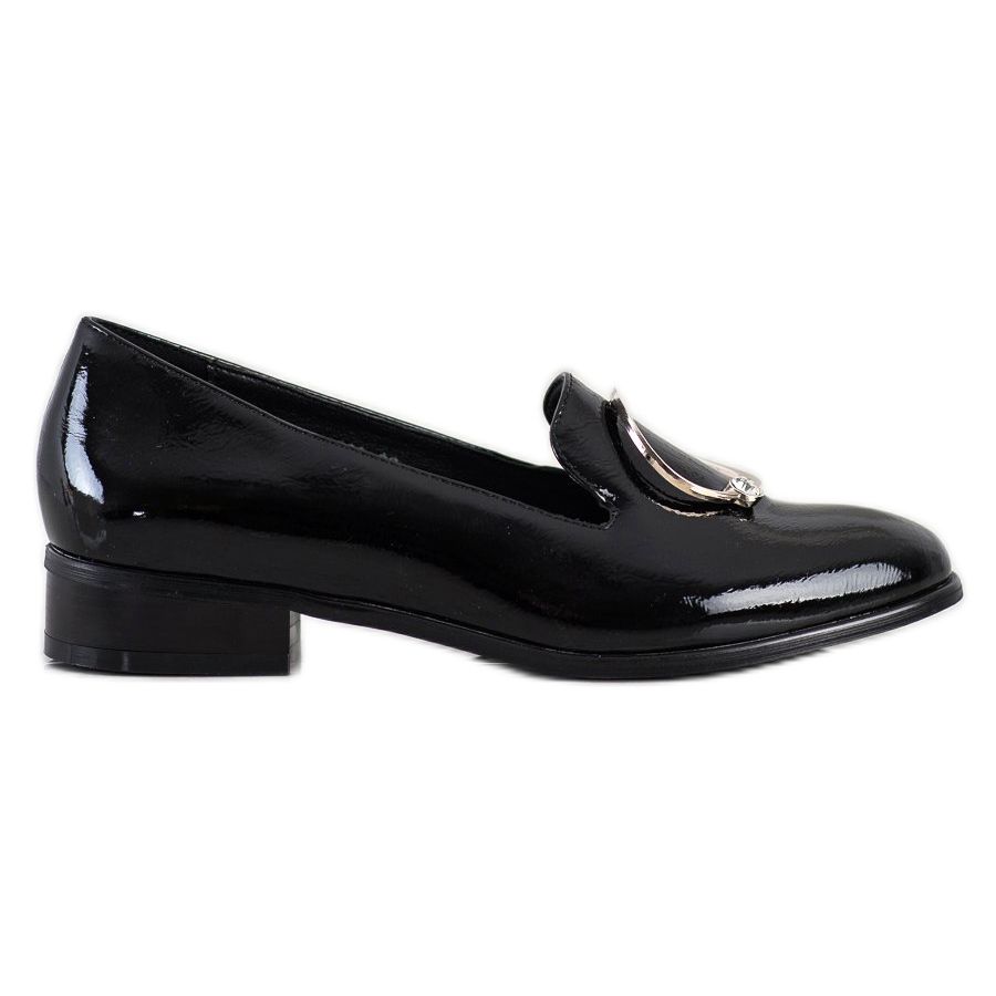 Apresentamos extraordinários mocassins pretos com decoração Vinceza, que combinam conforto com estilo elegante. Feitos em couro sintético envernizado, esses sapatos slip-on são a escolha perfeita para mulheres que valorizam conforto e um visual moderno. A sua cor preta profunda contrasta perfeitamente com a elegante decoração prateada do nariz, que lhes confere carácter e elegância.